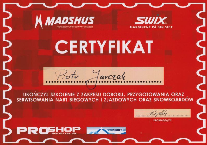 Regularnie uczestniczymy w szkoleniach z zakresu serwisowania, smarowania oraz doboru nart biegowych